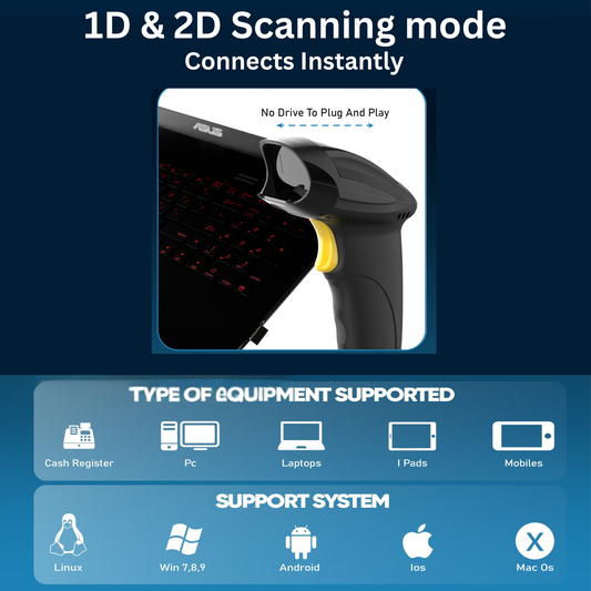 Brontix X1-Barcode Scanner Wired 2D & 1D Super Fast | QR Code Scanner Rechargeable | Handheld Barcode Reader with Induction Scanning, Built-in Light, ABS Body
